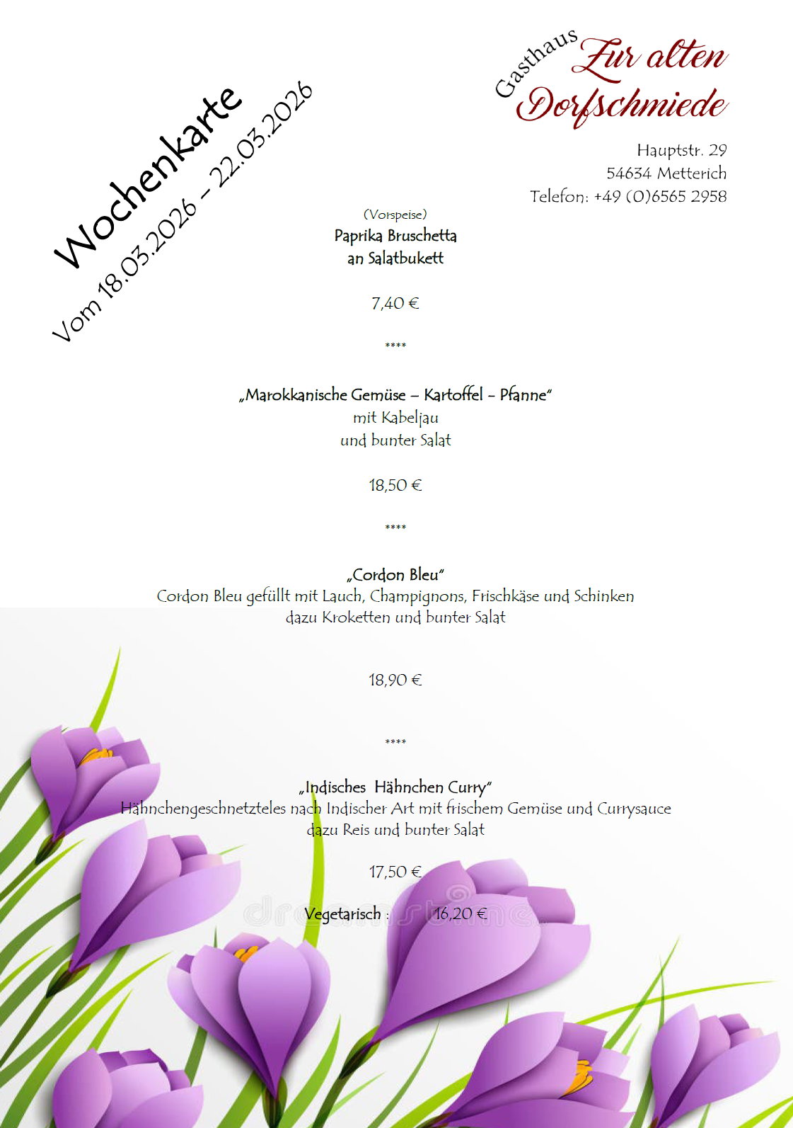 • Speisekarte